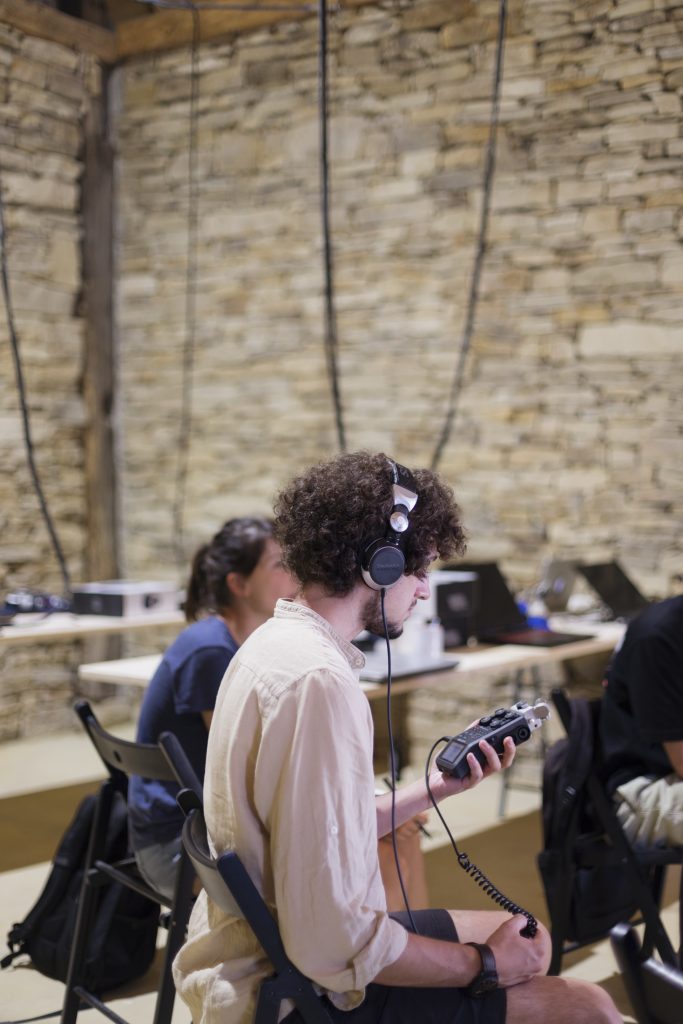 Maintaining the workshop-based structure of the residency , Austrian multimedia artist Lukas Jakob Löcker engaged with the 10 participants, sharing his expertise in sound art, field recording, and sound editing. His approach emphasized not just the hands-on creative process, but also improvisation and experimentation. His contribution was followed by the self-publishing and bookmaking workshop held by the design studio Graphomat (Andreea Popescu, Andra Pavel, and Mihai Popescu). The Graphomat team supported the participants in translating their concepts into printed form. Andreea, Andra, and Mihai led presentations on self-publishing, covering topics such as concept development, format, layout, paper types, binding, and printing. Through these sessions and discussions, participants refined their ideas and transformed sound into a tangible, physical object.